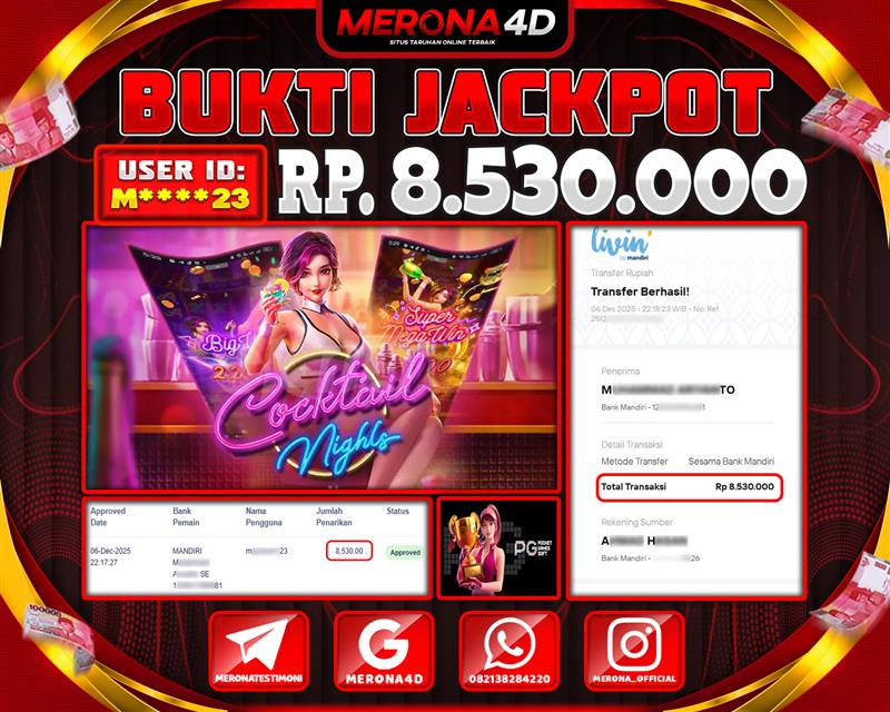 Selamat Kepada Member MERONA4D M*****3 Telah Jackpot Di COCKTAIL NIGHTS