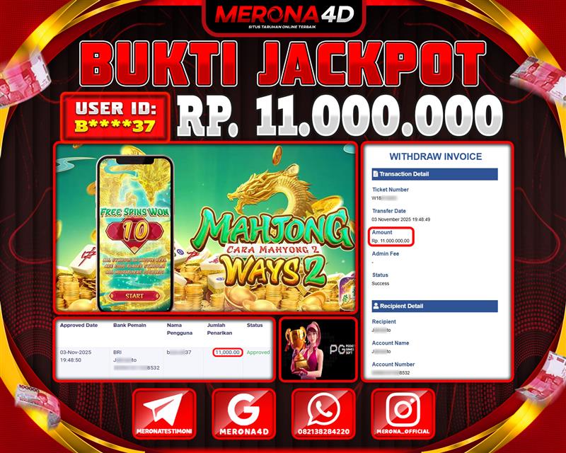 Selamat Kepada Member MERONA4D B*****37 Telah Jackpot Di MAHJONG WAYS 2