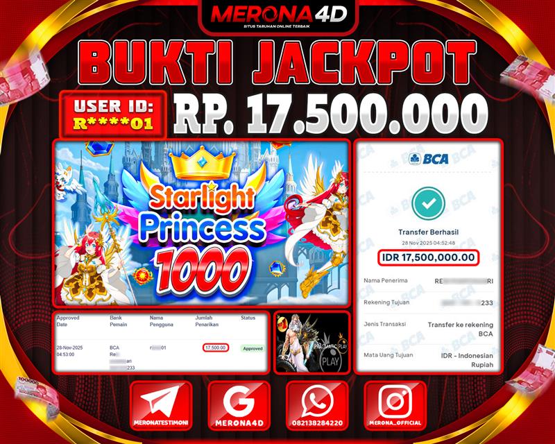 Selamat Kepada Member MERONA4D R*****01 Telah Jackpot Di STARLIGHT PRINCESS 1000