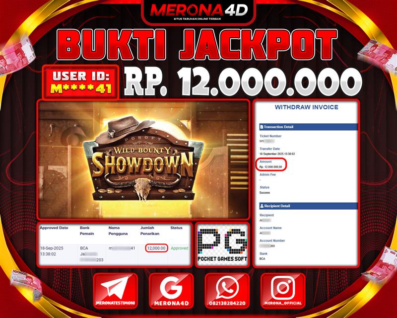 Selamat Kepada Member MERONA4D M*****41 Telah Jackpot Di WILD BOUNTY SHOWDOWN
