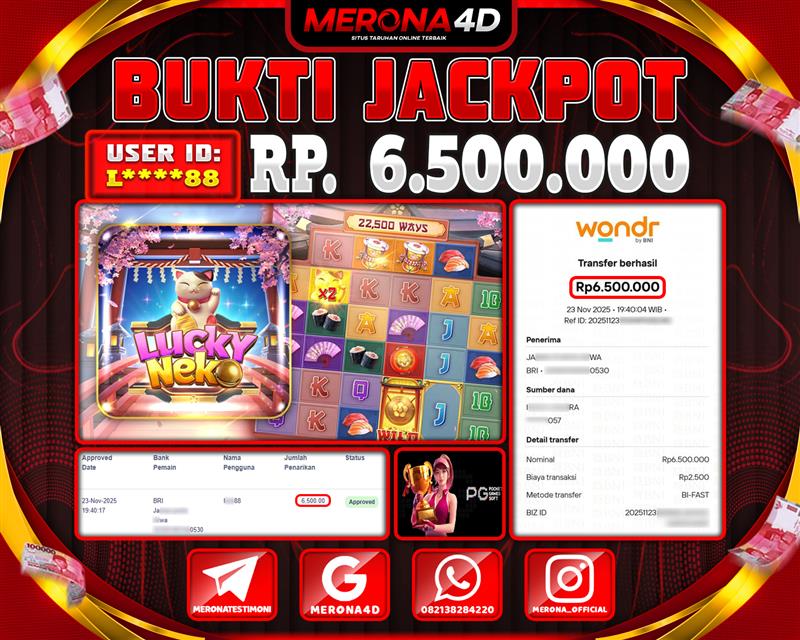 Selamat Kepada Member MERONA4D L*****88 Telah Jackpot Di LUCKY NEKO