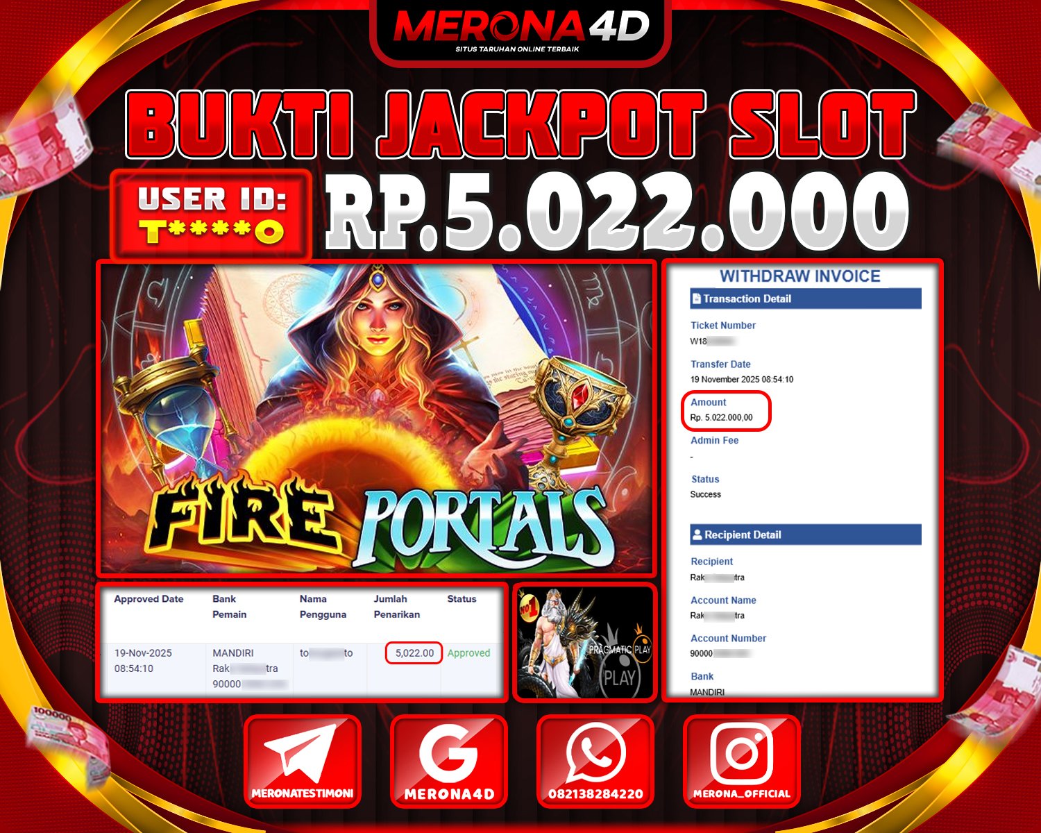 Selamat Kepada Member MERONA4D T*****O Telah Jackpot Di FIRE PORTALS