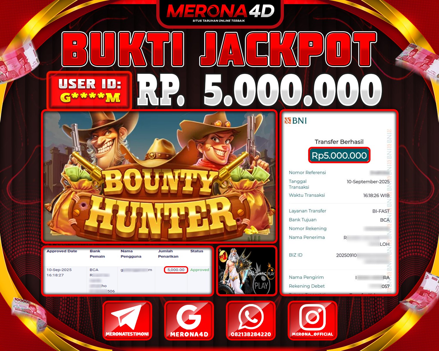 Selamat Kepada Member MERONA4D G****M Telah Jackpot Di BOUNTY HUNTER