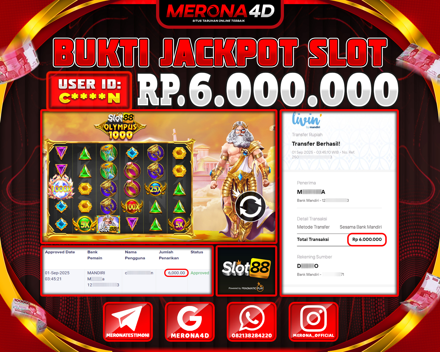 Selamat Kepada Member MERONA4D Bβ­‘οΏ½***οΏ½β­‘E Telah Jackpot Di SLOT88 OLYMPUS 1000