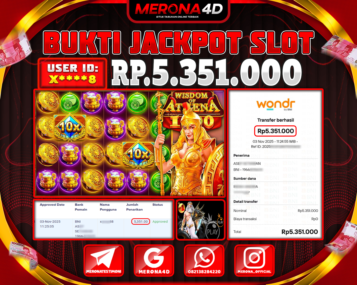 Selamat Kepada Member MERONA4D Mβ­‘οΏ½***οΏ½β­‘3 Telah Jackpot Di WISDOM OF ATHENA 1000