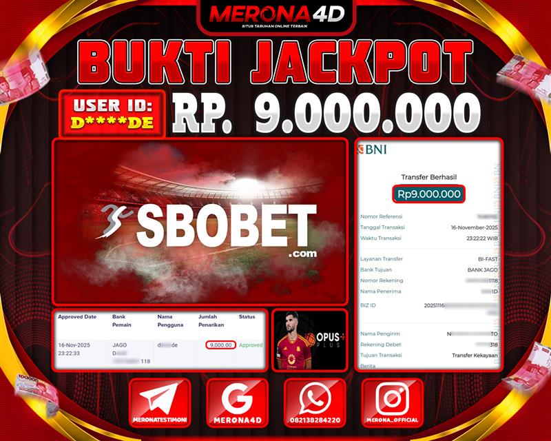 Selamat Kepada Member MERONA4D D*****DE Telah Jackpot Di OPUS SPORTBOOKS