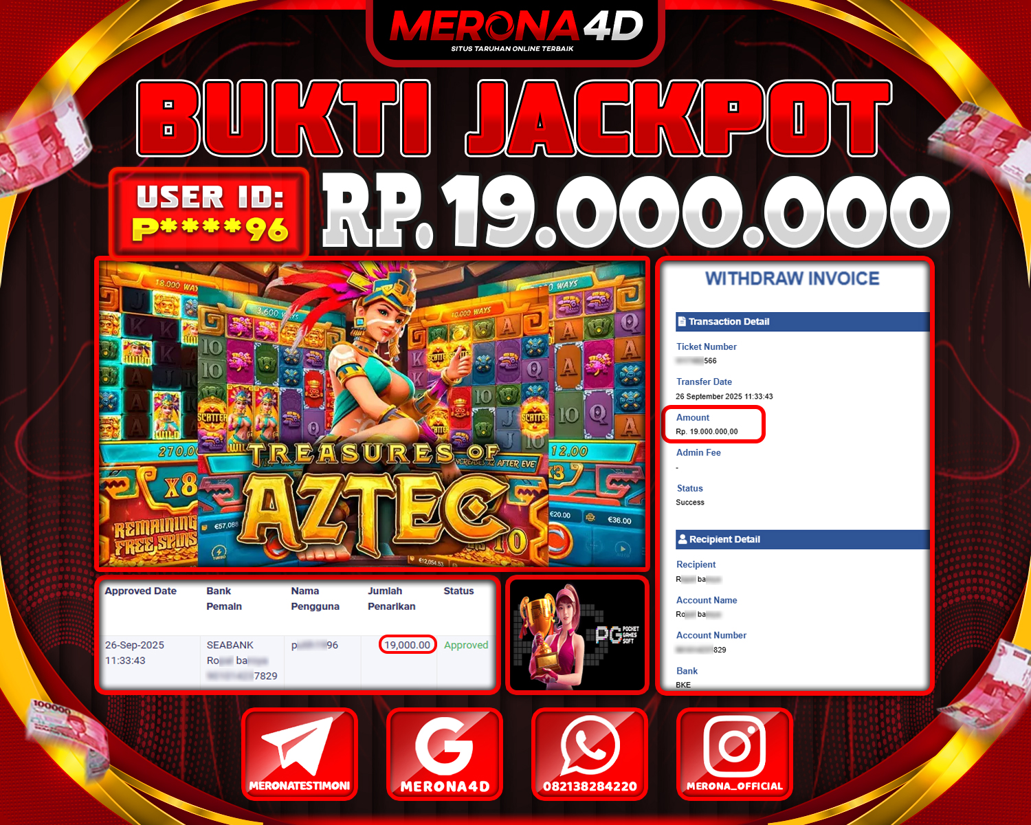 Selamat Kepada Member MERONA4D P****6 Telah Jackpot Di TREASURES OF AZTEC