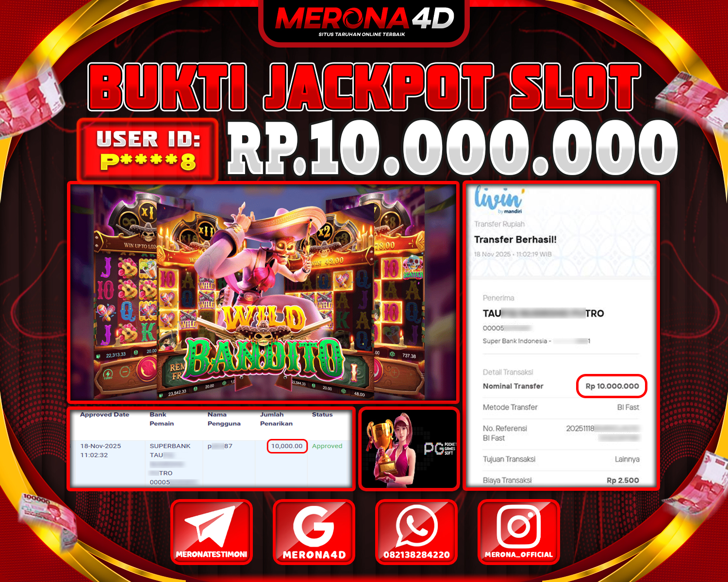 Selamat Kepada Member MERONA4D P****8 Telah Jackpot Di WILD BANDITO