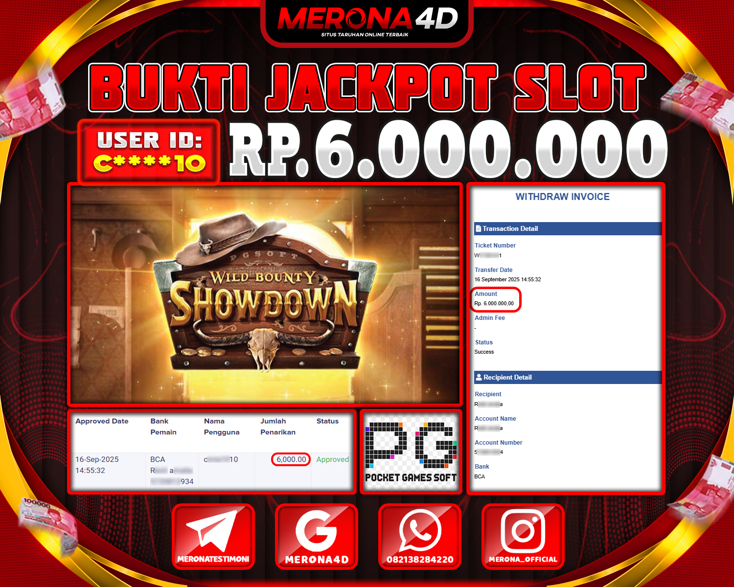 Selamat Kepada Member MERONA4D C*****0 Telah Jackpot Di WILD BOUNTY SHOWDOWN