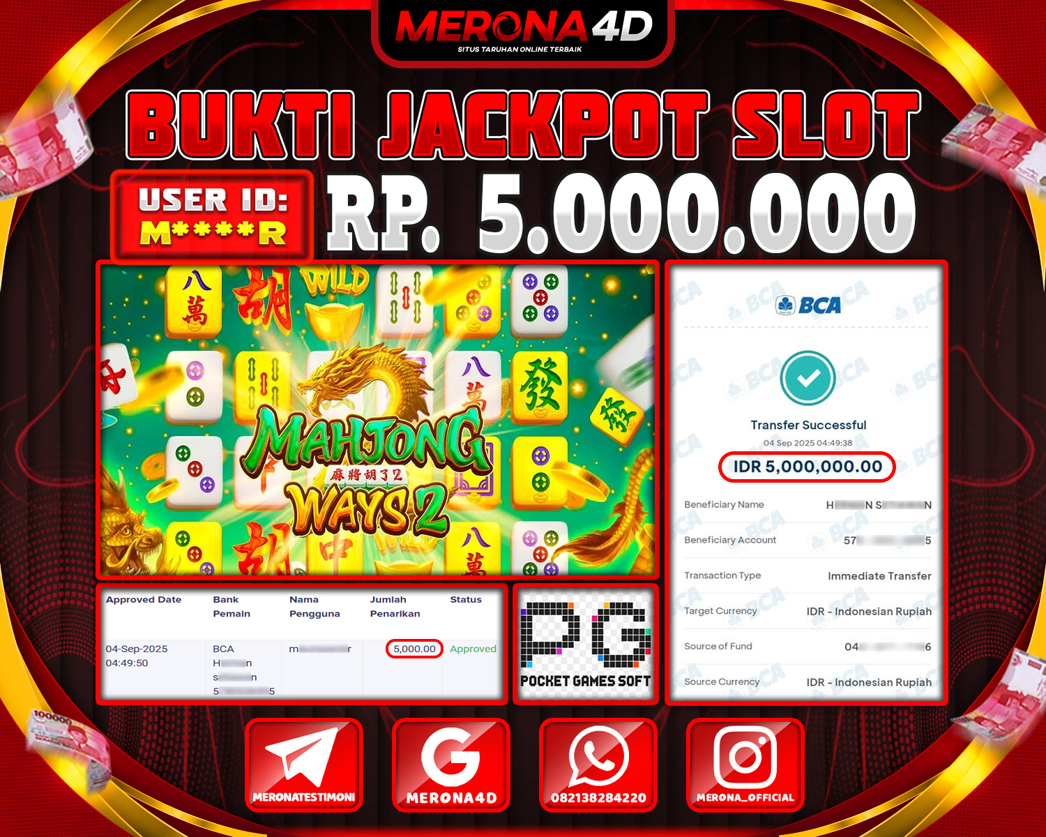 Selamat Kepada Member MERONA4D M****R Telah Jackpot Di MAHJONG WAYS 2