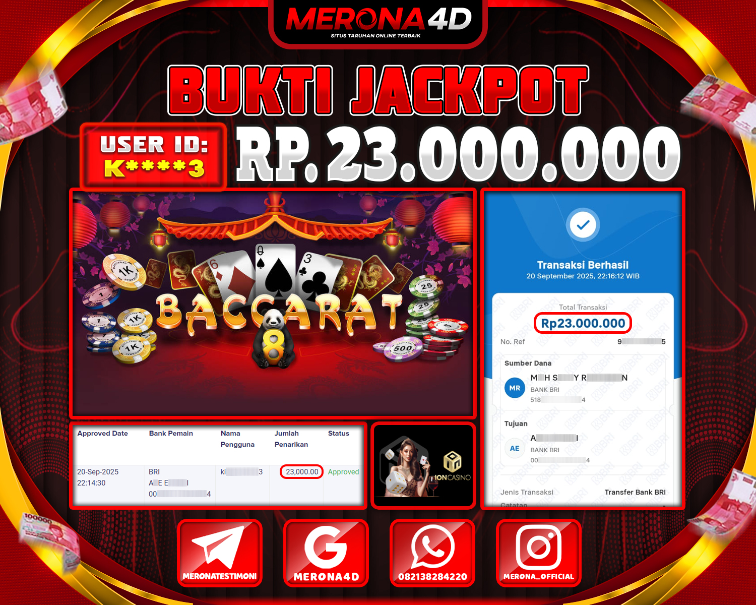 Selamat Kepada Member MERONA4D K****3 Telah Jackpot Di BACCARAT