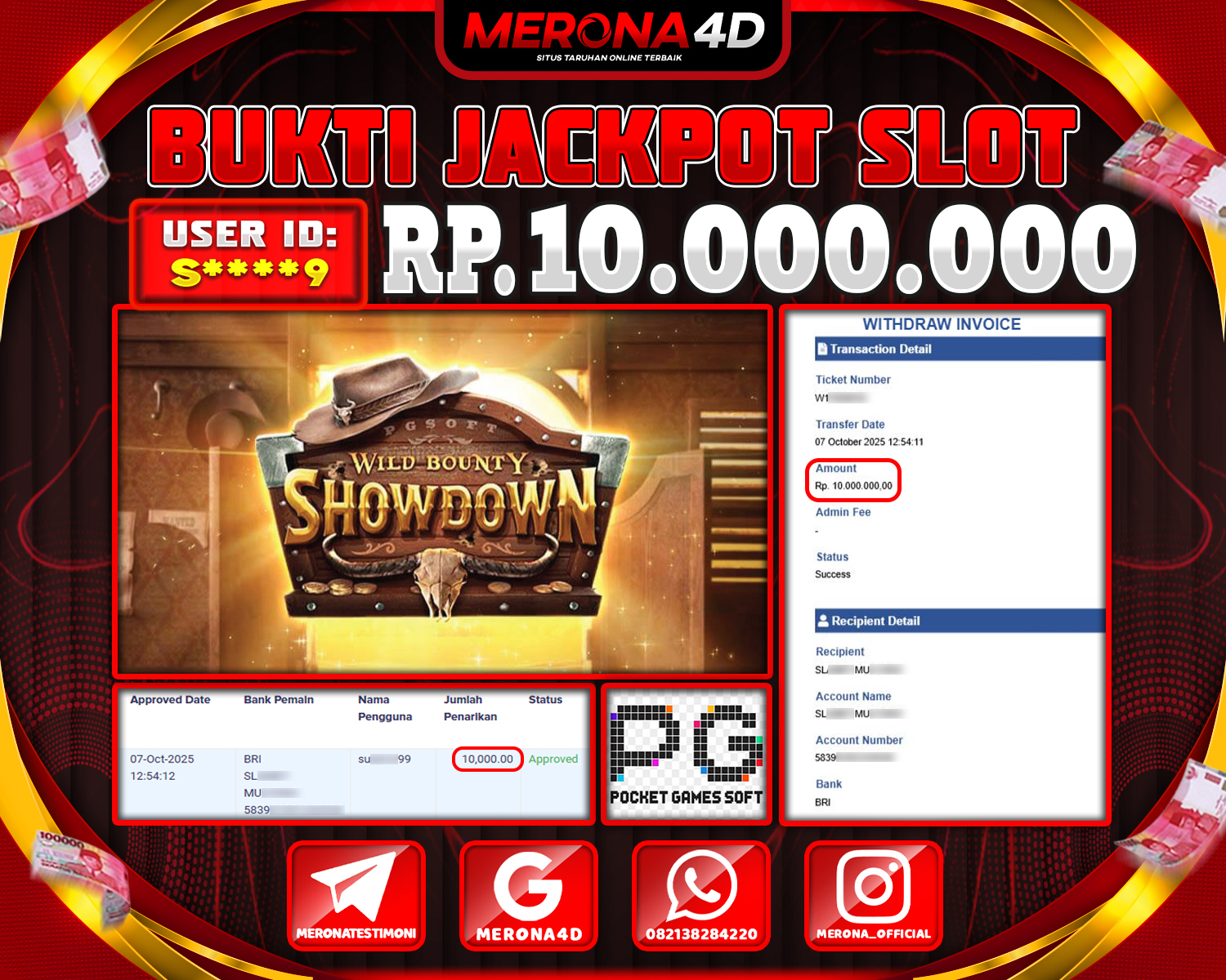 Selamat Kepada Member MERONA4D S****9 Telah Jackpot Di WILD BOUNTY SHOWDOWN