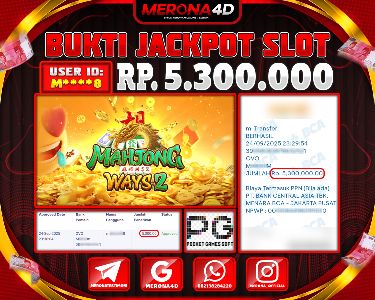 Selamat Kepada Member MERONA4D M****8 Telah Jackpot Di MAHJONG WAYS 2