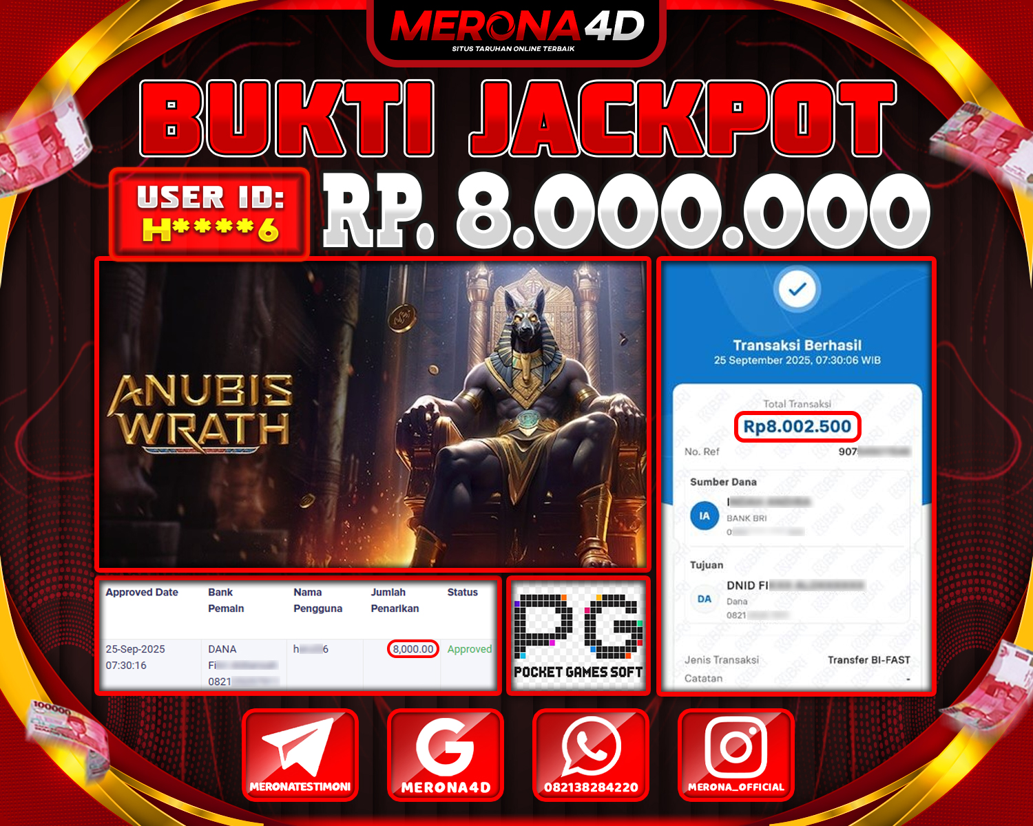 Selamat Kepada Member MERONA4D H**** Telah Jackpot Di ANUBIS WRATH
