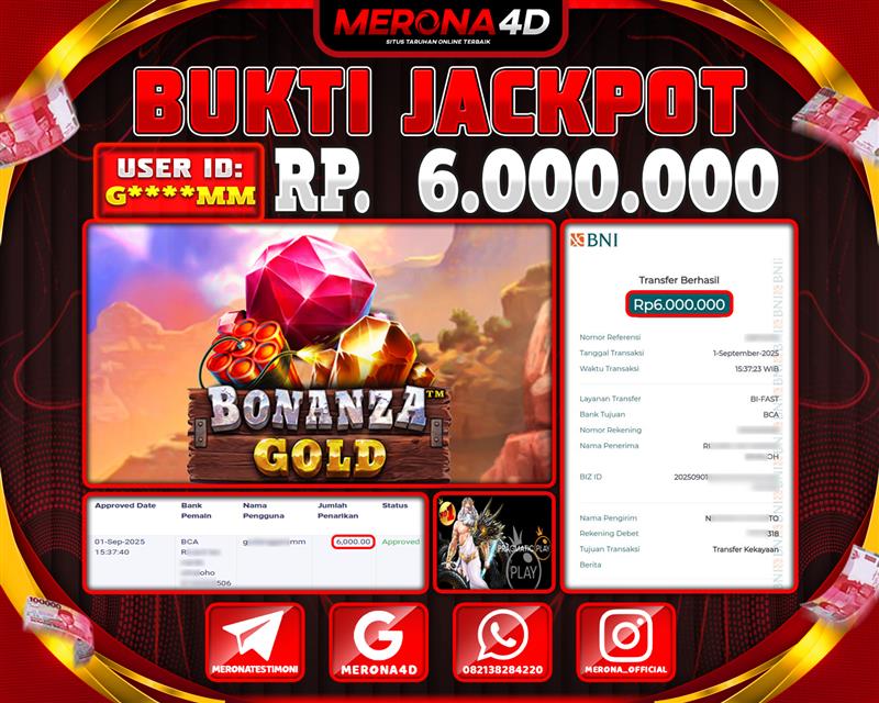 Selamat Kepada Member MERONA4D G*****MM Telah Jackpot Di BONANZA GOLD