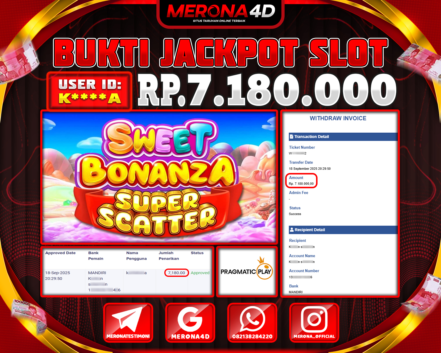 Selamat Kepada Member MERONA4D K****A Telah Jackpot Di SWEET BONANZA SUPER SCATTER