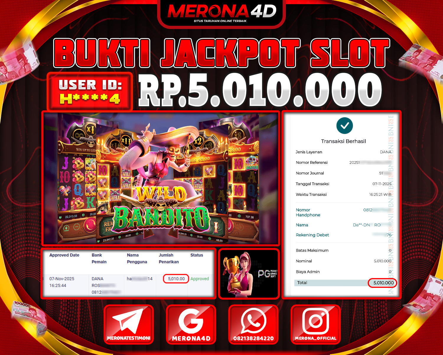 Selamat Kepada Member MERONA4D Hβ­‘οΏ½***οΏ½β­‘4 Telah Jackpot Di WILD BANDITO