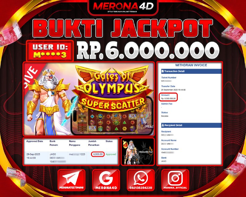 Selamat Kepada Member MERONA4D Mβ­‘οΏ½***οΏ½β­‘3 Telah Jackpot Di GATES OF OLYMPUS SUPER SCATTER