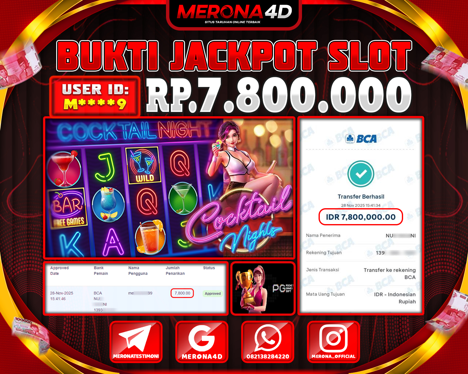 Selamat Kepada Member MERONA4D M****3 Telah Jackpot Di COCKTAIL NIGHTS