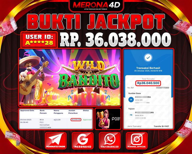 Selamat Kepada Member MERONA4D A****8 Telah Jackpot Di WILD BANDITO