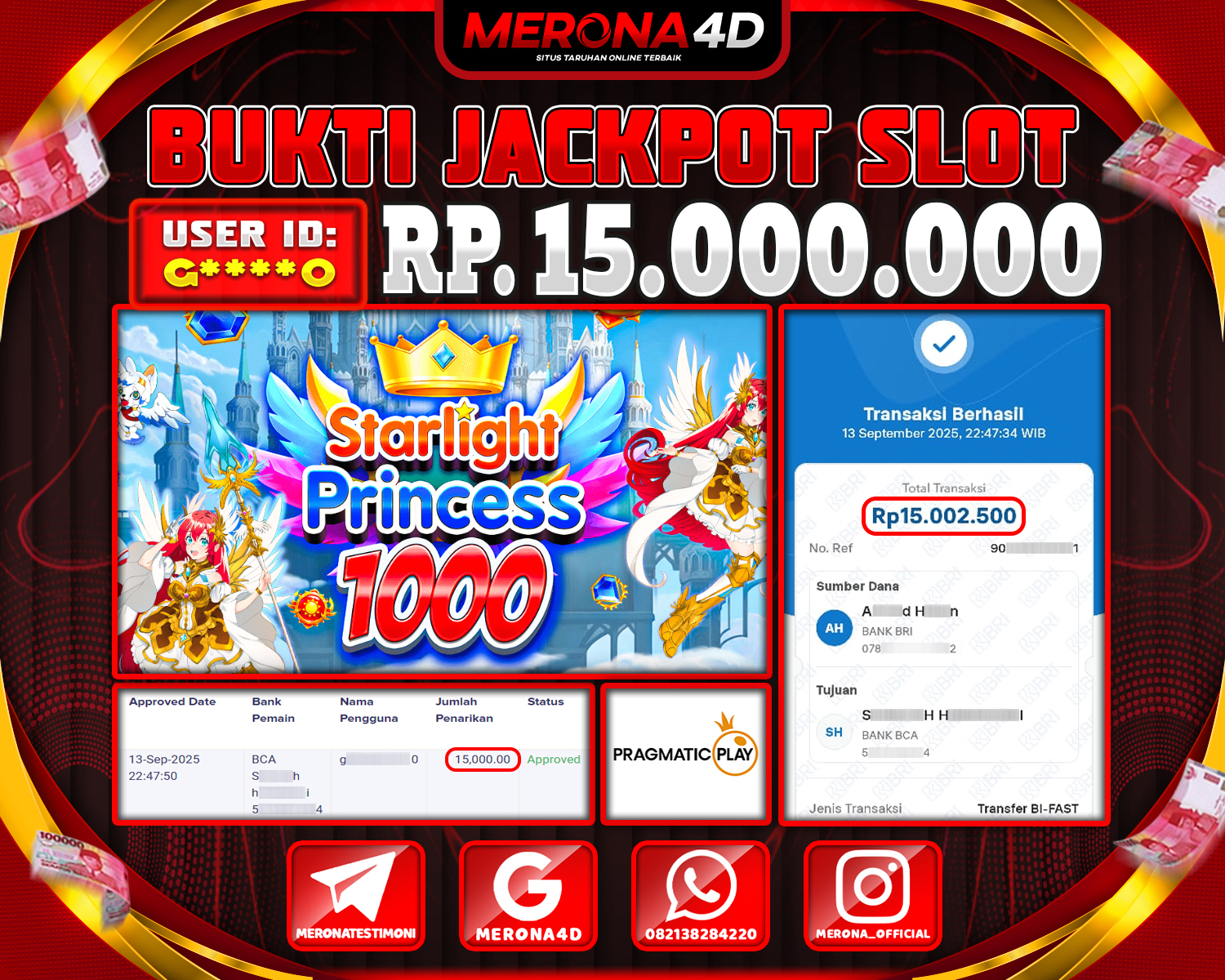 Selamat Kepada Member MERONA4D G****0 Telah Jackpot Di STARLIGHT PRINCESS 1000