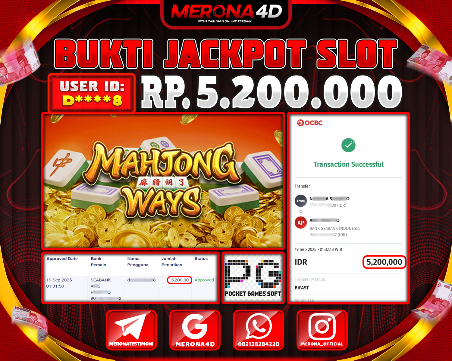 Selamat Kepada Member MERONA4D D****8 Telah Jackpot Di MAHJONG WAYS