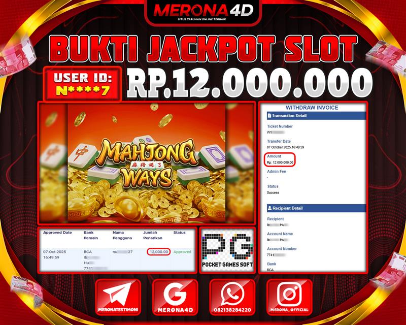 Selamat Kepada Member MERONA4D N****7 Telah Jackpot Di MAHJONG WAYS