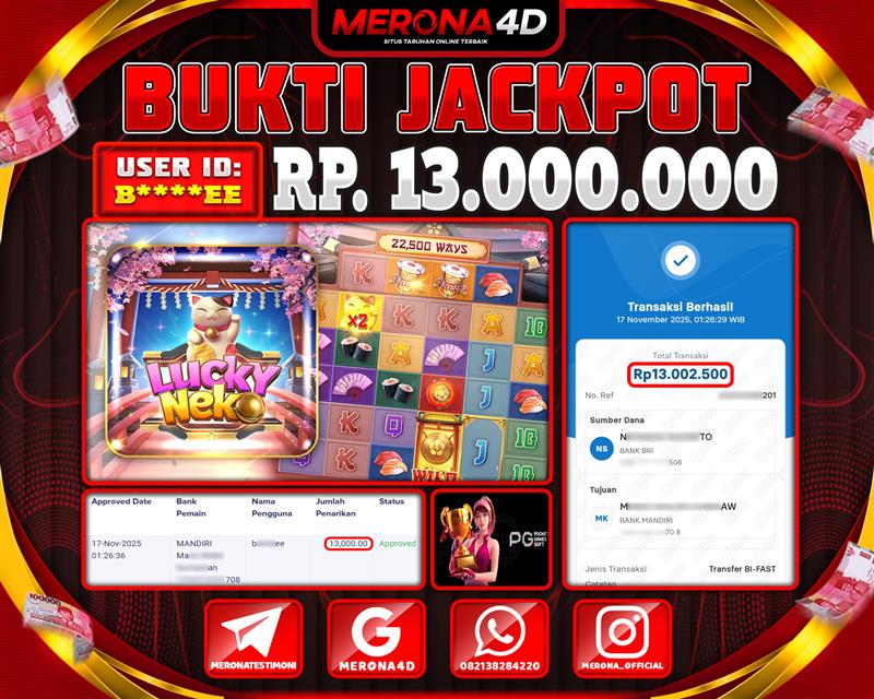 Selamat Kepada Member MERONA4D B*****EE Telah Jackpot Di LUCKY NEKO