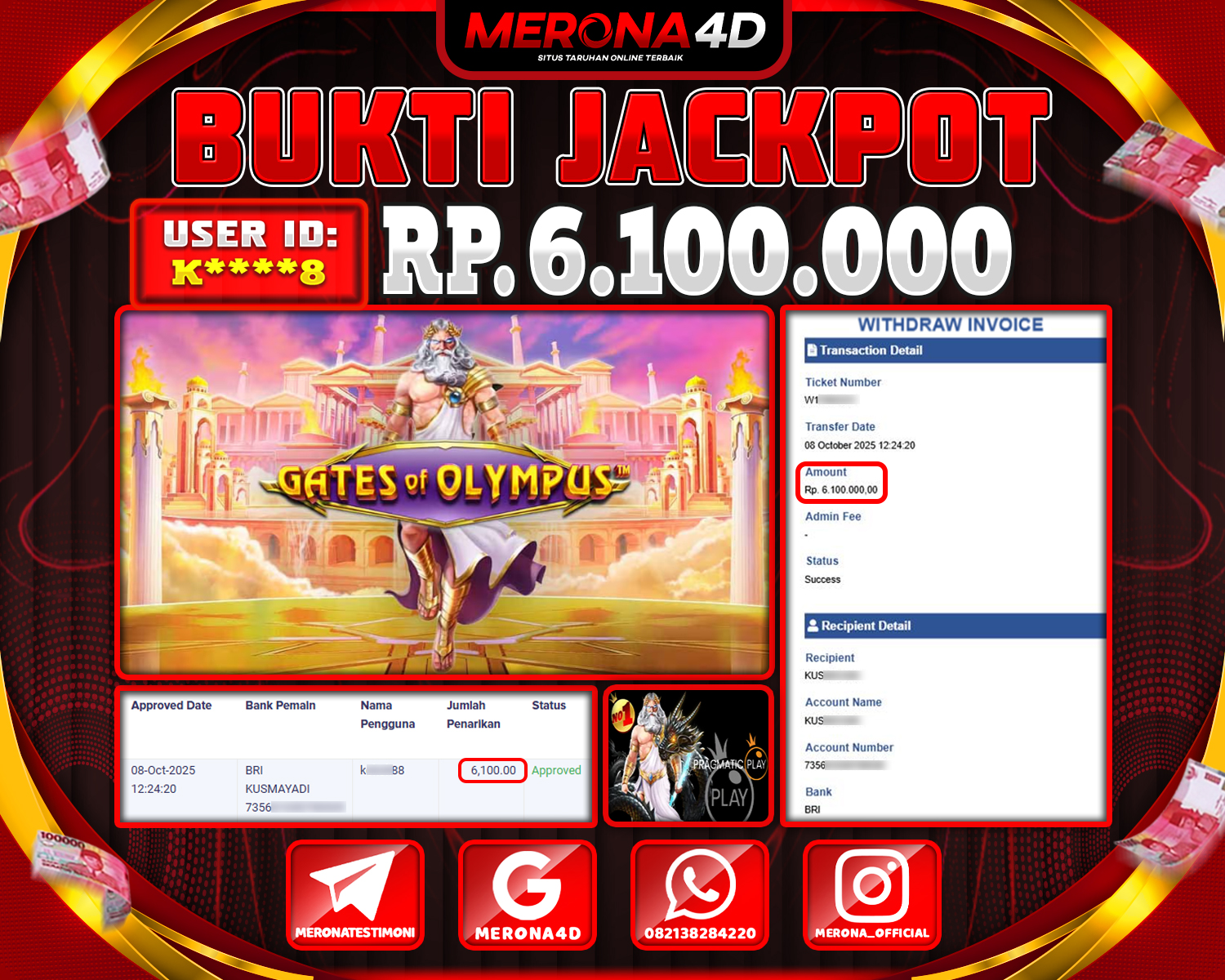 Selamat Kepada Member MERONA4D Kβ­‘οΏ½***οΏ½β­‘8 Telah Jackpot Di GATES OF OLYMPUS
