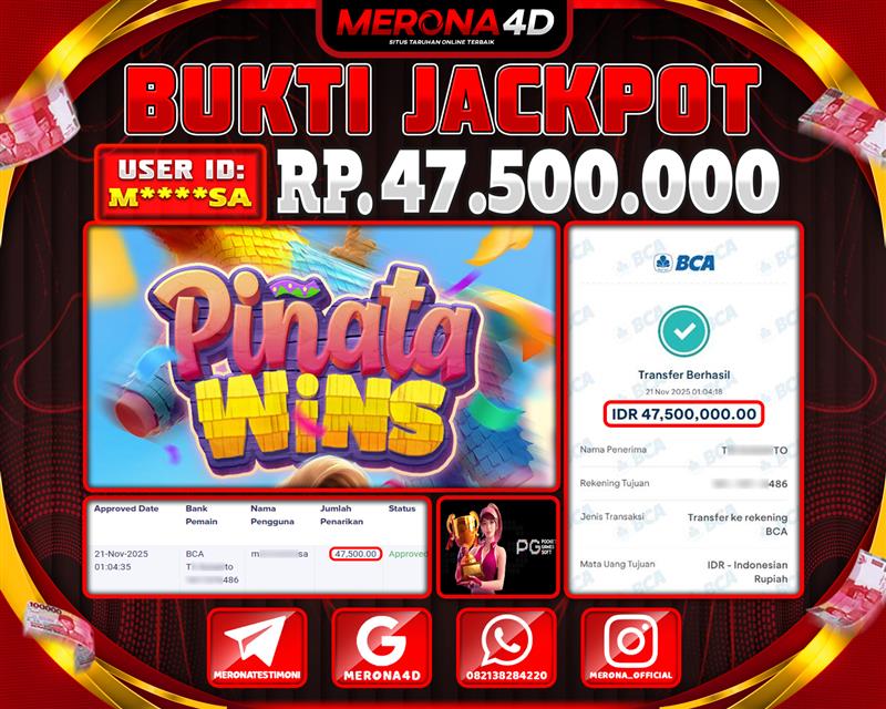 Selamat Kepada Member MERONA4D M*****SA Telah Jackpot Di PINATA WINS
