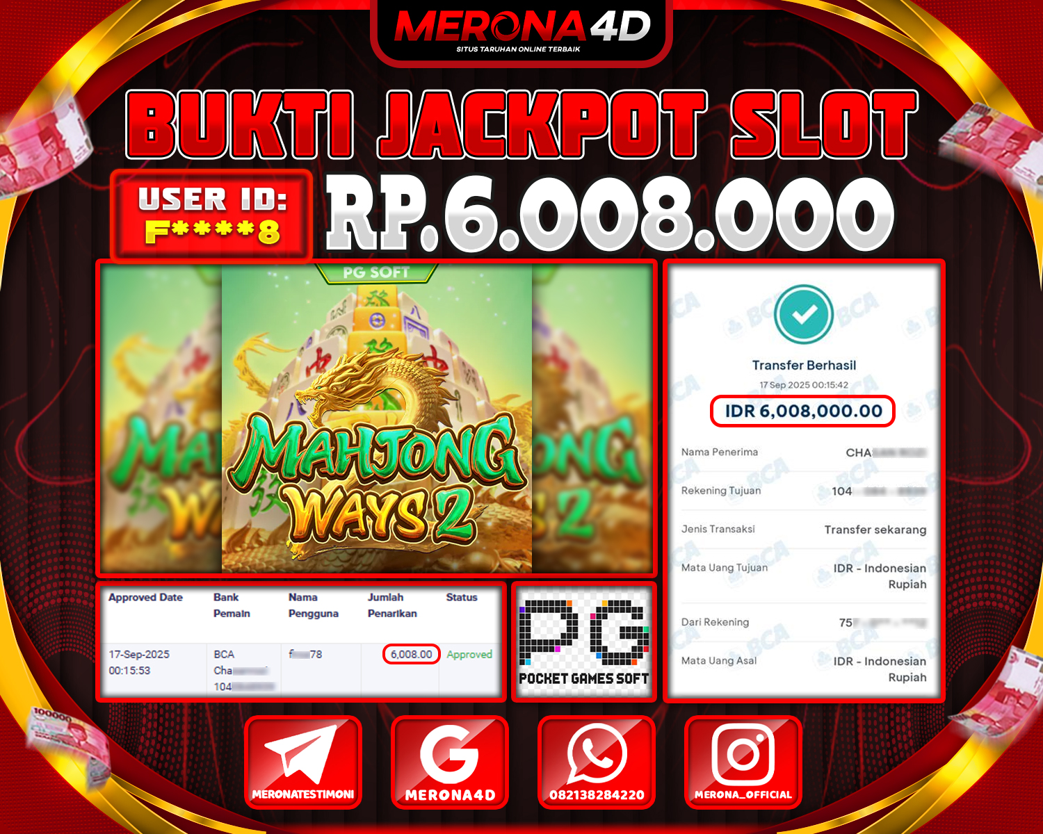 Selamat Kepada Member MERONA4D Fβ­‘οΏ½***οΏ½β­‘8 Telah Jackpot Di MAHJONG WAYS 2