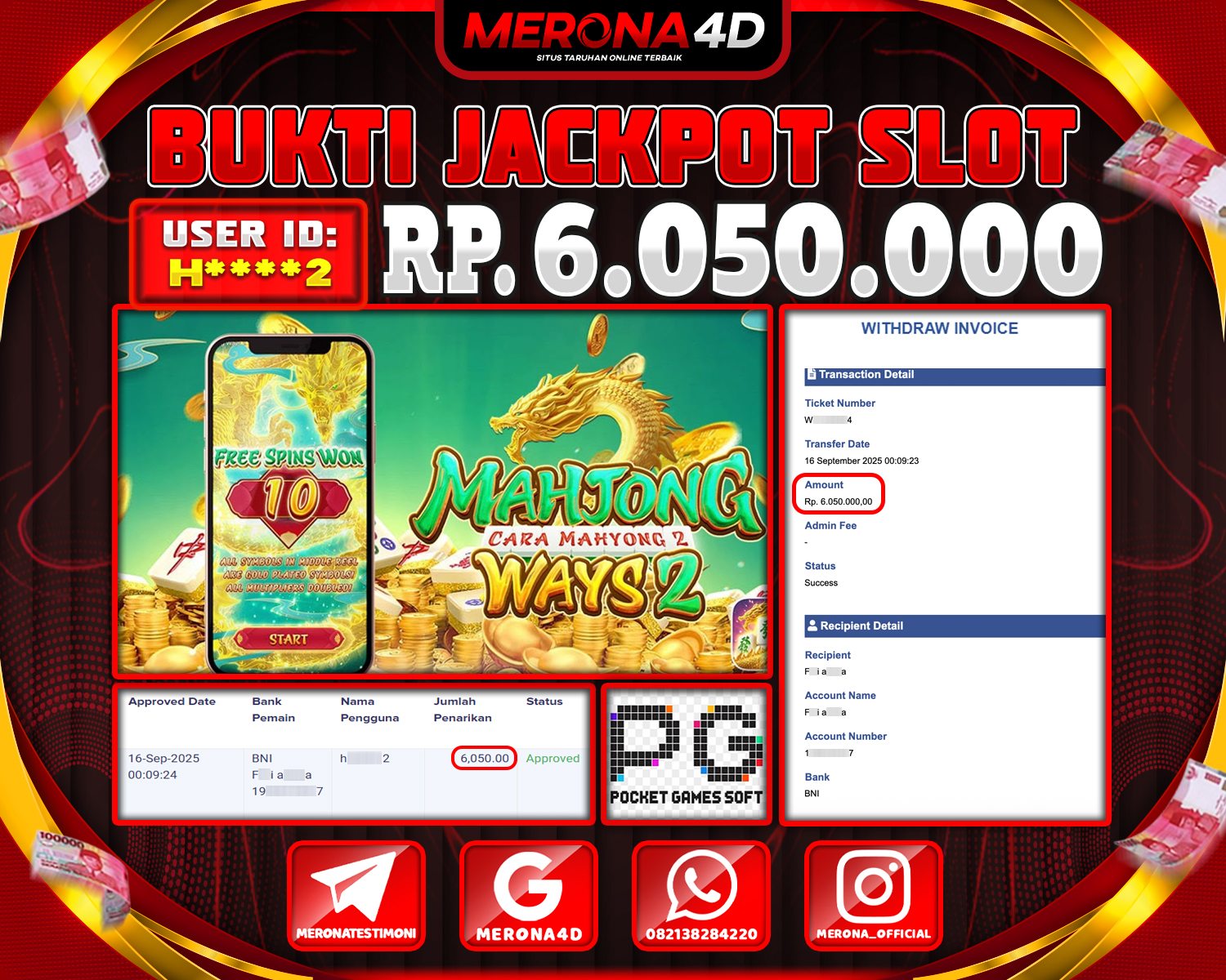 Selamat Kepada Member MERONA4D H****2 Telah Jackpot Di MAHJONG WAYS 2