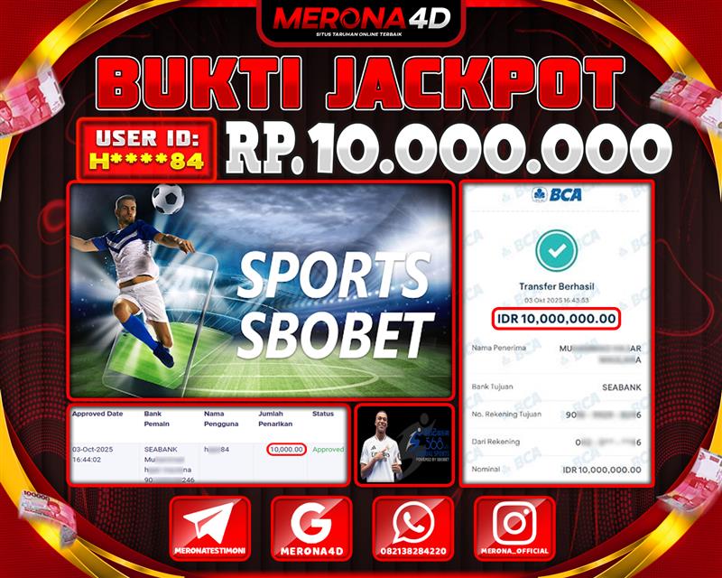 Selamat Kepada Member MERONA4D H*****4 Telah Jackpot Di SBOBET