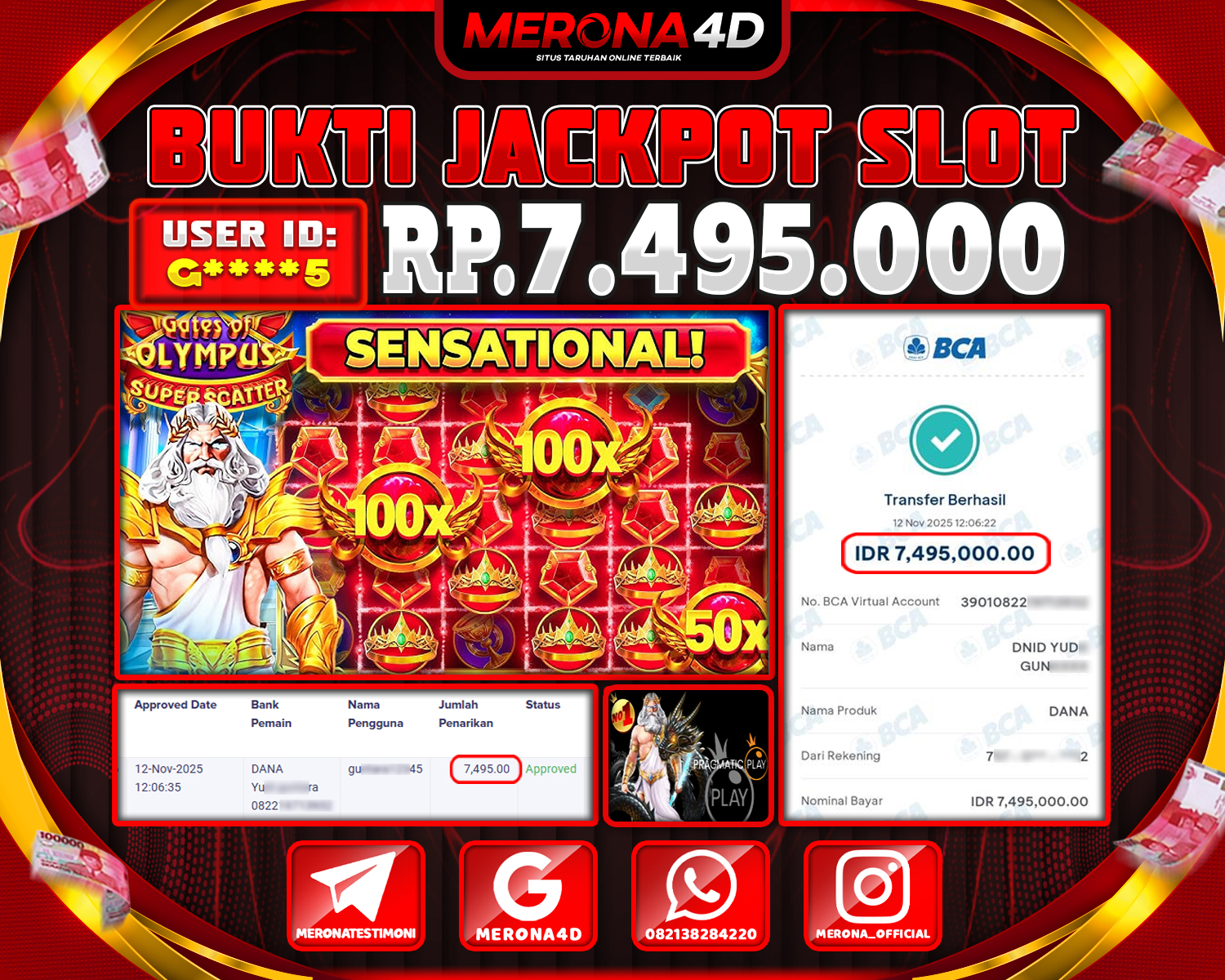 Selamat Kepada Member MERONA4D Gβ­‘οΏ½***οΏ½β­‘5 Telah Jackpot Di GATES OF OLYMPUS SUPER SCATTER